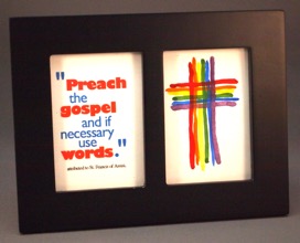 In a unique frame the LORDS PRAYER on a rustic piece of paper with an original opaque water color.